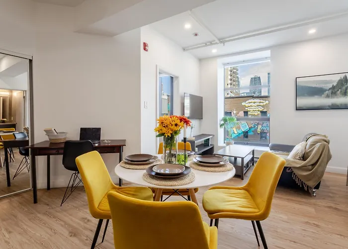 Modern 1Bdr Apartment On Bishop - Mtl Montréal de 60 m² est niché dans le quartier Golden Square Mile, à seulement 13 minutes à pied de l'Université McGill. Les clients peuvent utiliser le Wi-Fi à des fins professionnelles et de loisirs.
